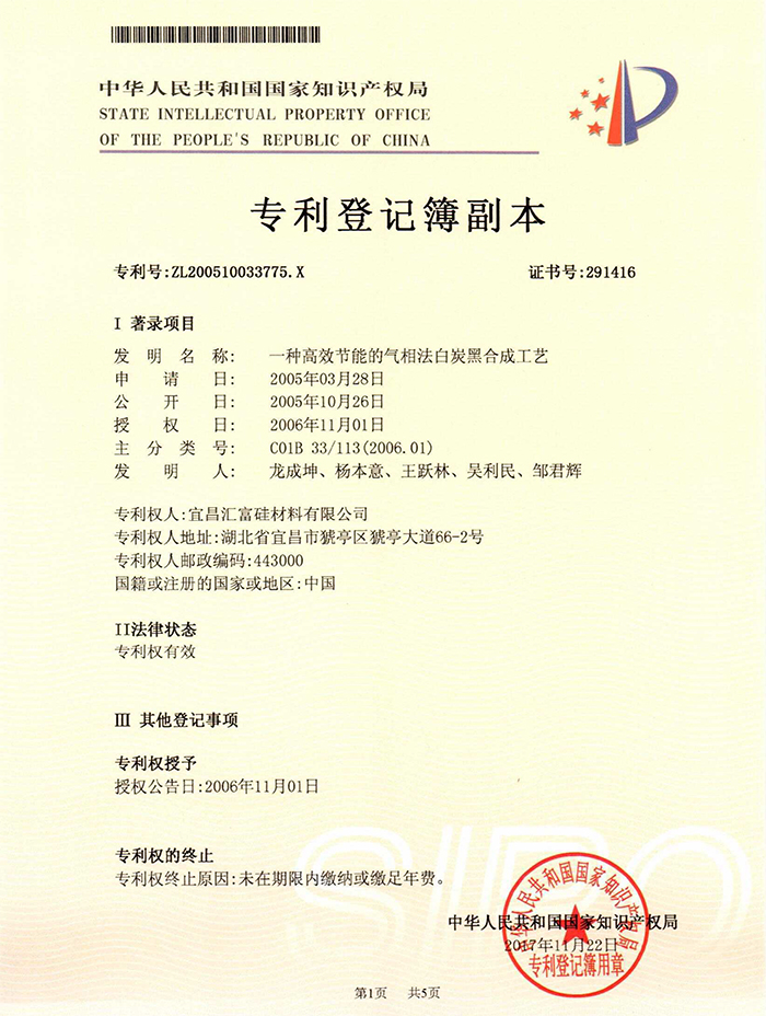 一种高效节能的气相法白炭黑合成工艺专利证书